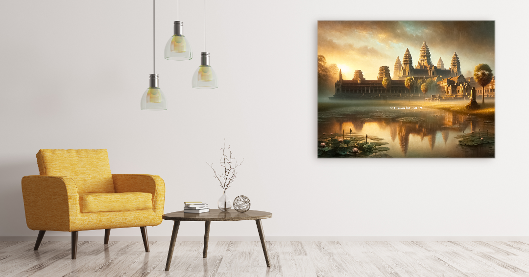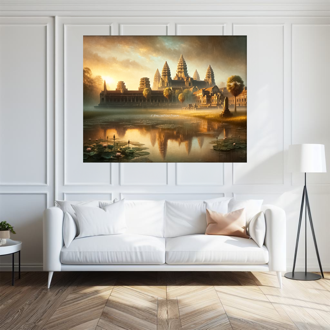 Witness the serene beauty of 'Dawn at Angkor' through this exquisite digita; brushstrokes art. Capturing the mystical ambiance of Angkor Wat at sunrise, this piece merges the ancient with the digital, offering a modern interpretation of a timeless wonder. Perfect for those who cherish both history and technology, it invites contemplation and awe into any space, bringing a piece of eternal beauty into your home and heart.