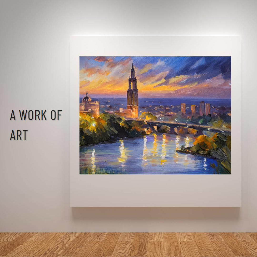 Bask in the golden glow of 'Sunset Serenade in the City' a digital artwork that captures the enchanting moment of dusk over a bustling city. Let this piece transport you to a world where the day's hustle fades into a tranquil evening, bringing a piece of eternal beauty into your home and heart.
